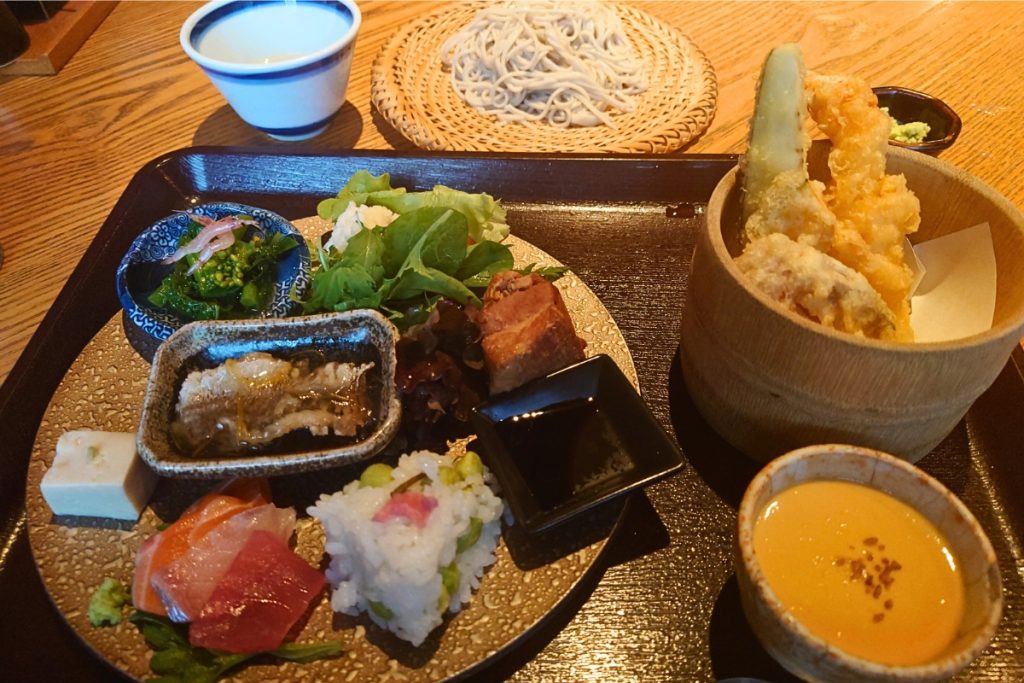 天ぷら/サラダ/豚の角煮/蕎麦豆腐/季節の小鉢/お刺身/デザート/お蕎麦